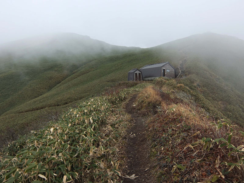 ガスガスなので、山頂で1時間強休憩後、下山する。