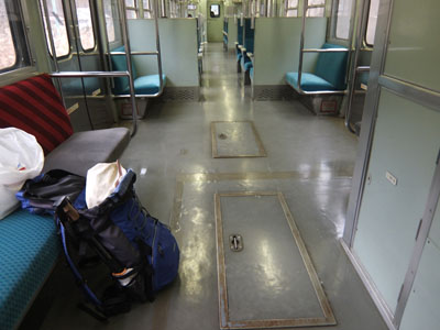 2両編成で6人しか乗ってない。