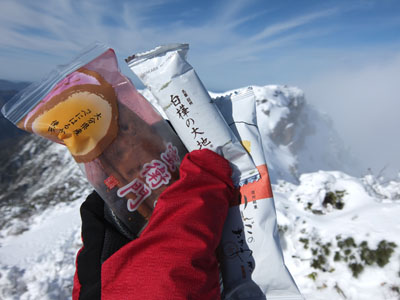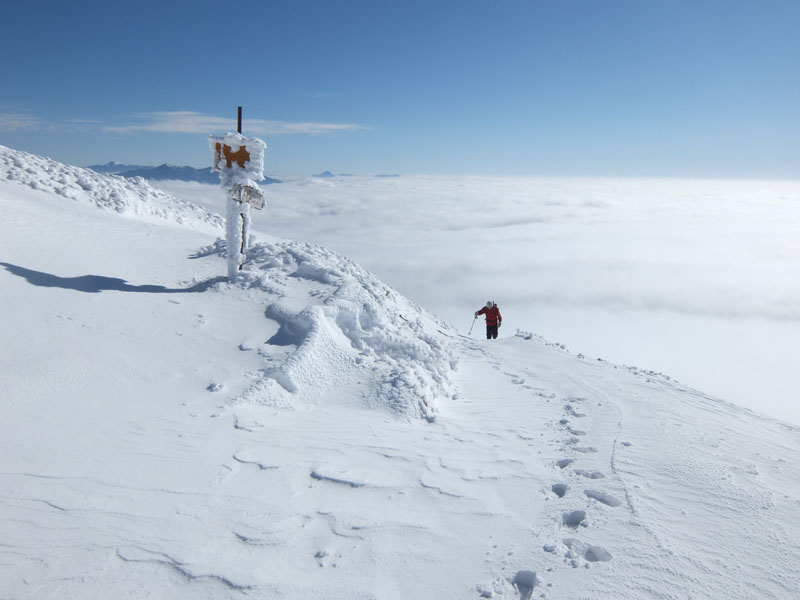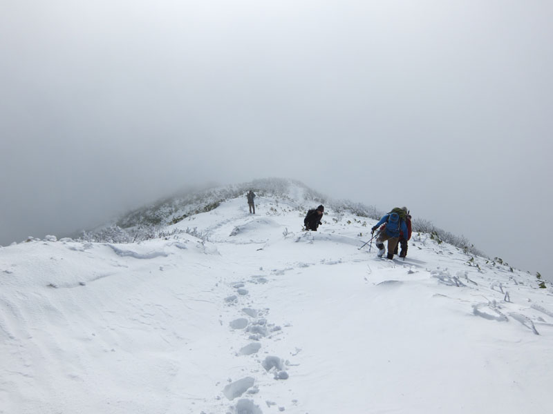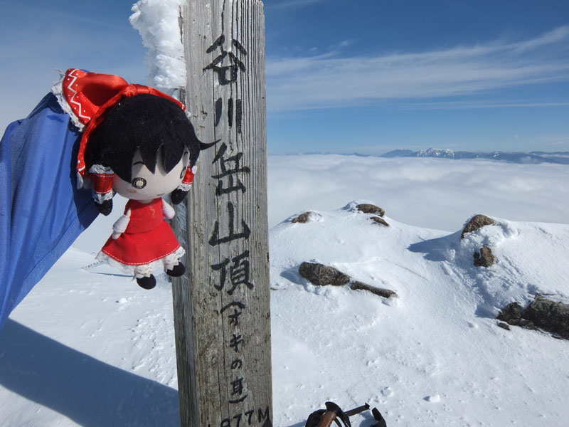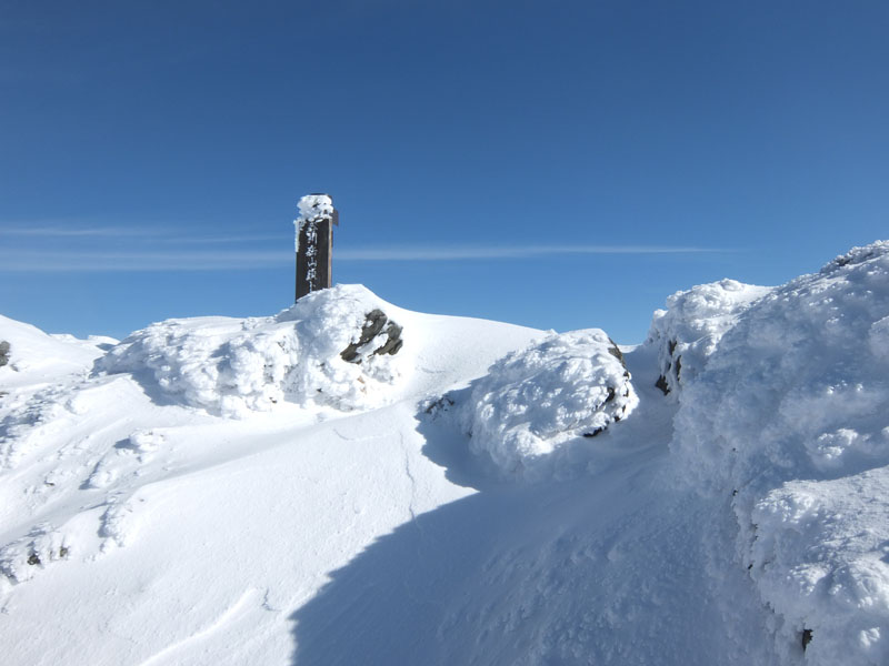 30〜40cmの新雪をラッセルしつつ登ると頂上へ。