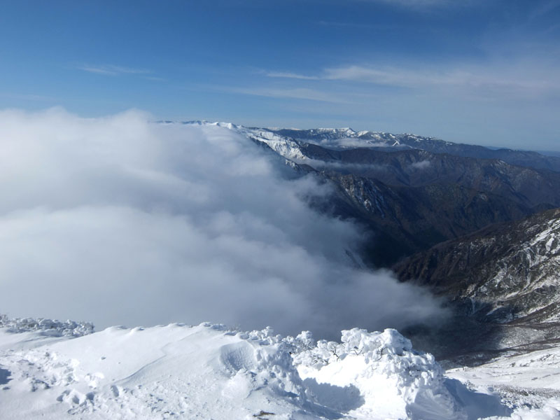 雲が上州側から越後側に滝のように流れていて幻想的。