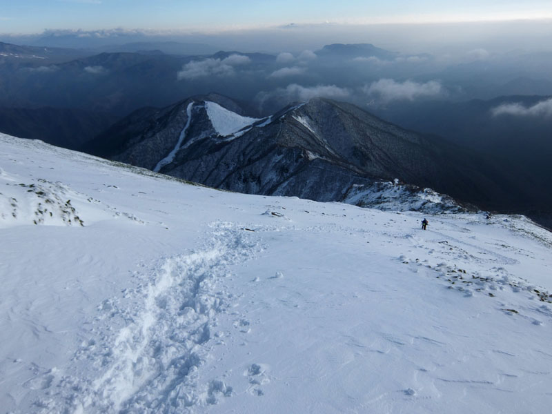 天神平スキー場が見える。あそこまで下るのに1時間強だ。