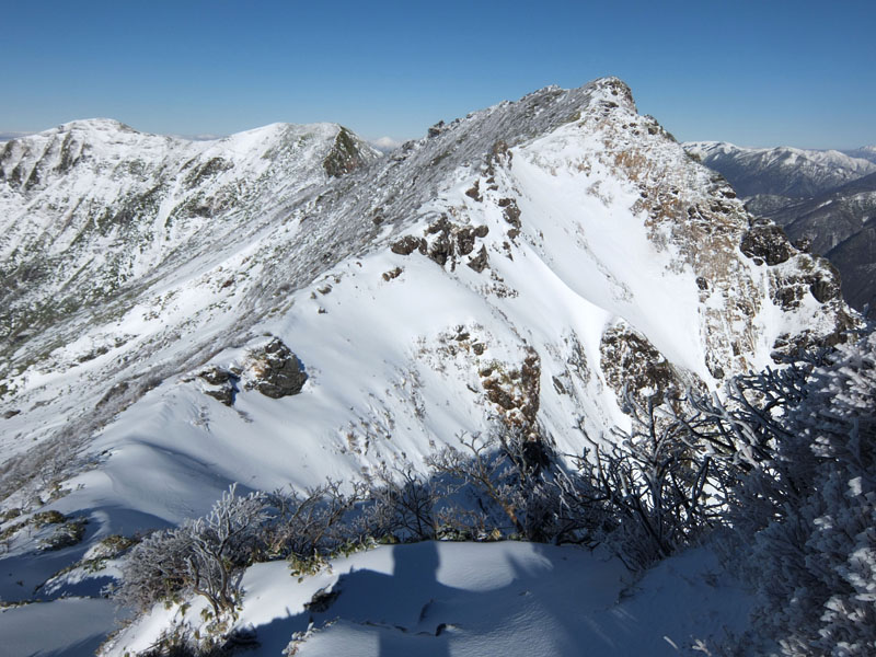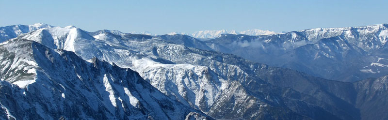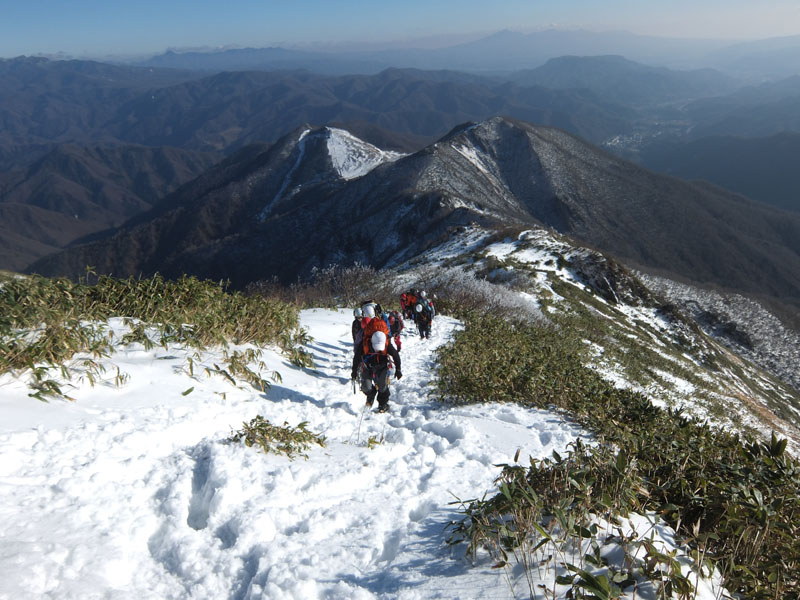手前左は平標や仙ノ倉、手前右端は苗場山だ。