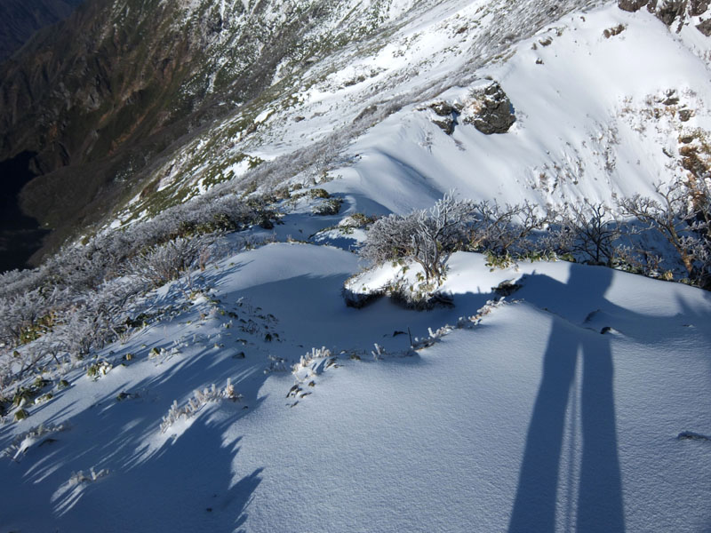 避難小屋から先は10cmほどのラッセルとなっているよう。