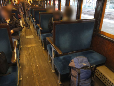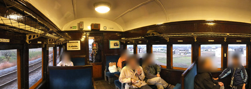 ヲタで満載のスハフ32(ほぼ日本最古の客車で1938年製造)に乗る。