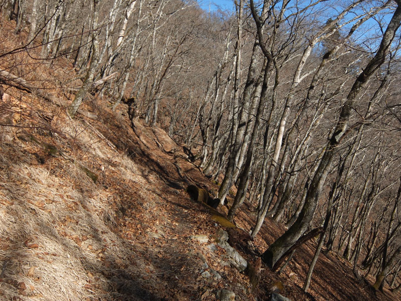 芋の木ドッケのトラバース路には雪はないため安全だ。