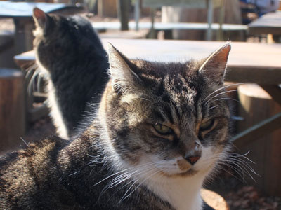 茶屋のオヤジにより去勢されているため、飼い猫のようなもんだ。