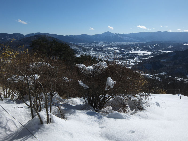 陣馬山頂上付近では日陰で積雪0.5cmくらいとなっているが、