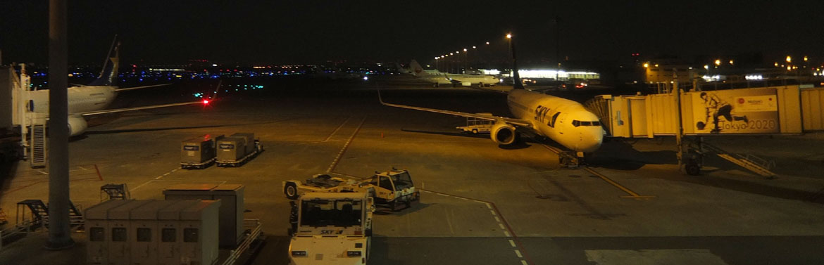早朝の羽田空港はまだまっくら。