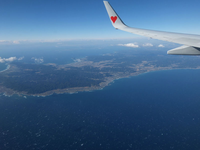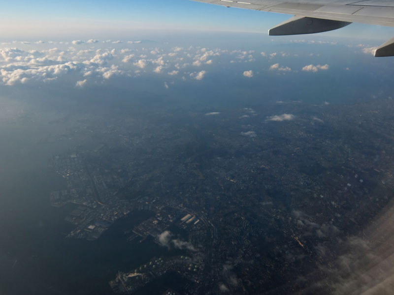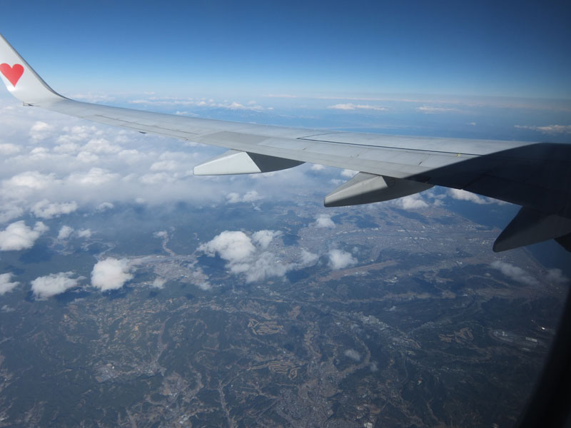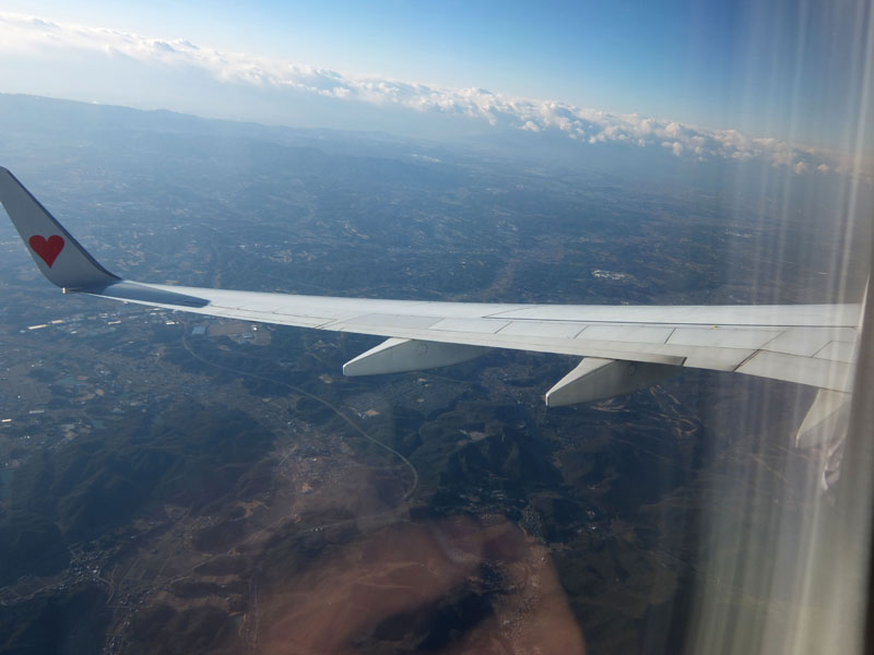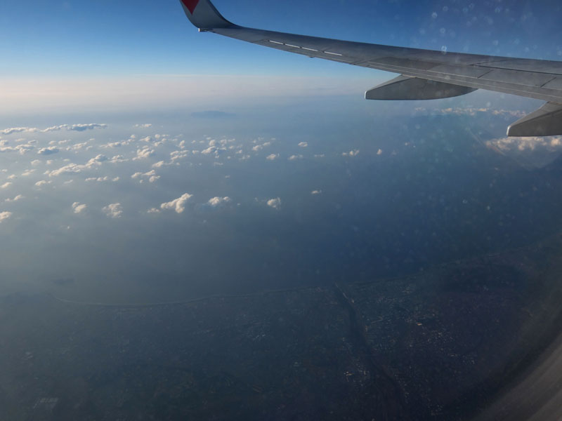 離陸すると一気に太陽が上がり空が青くなる。