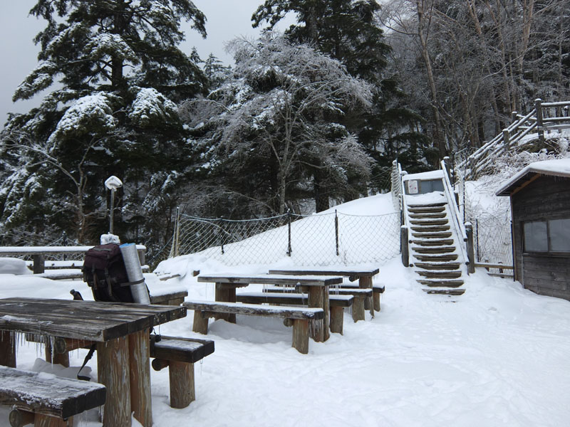 雲取山荘のあたりまで来ると樹に雪が載っていて北八ヶ岳な雰囲気。