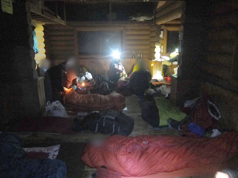 下界から5時間の小屋で18時到着は遅すぎ(13時出発か?)で、