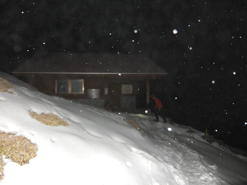 外でツェルトで寝てもいいが、翌朝寒い予報なので少々辛い。