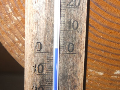 外気温はマイナス12℃、室内は+2℃。
