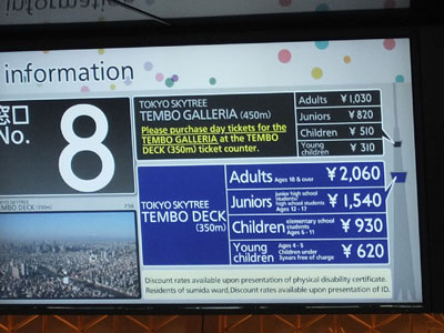 スカイツリーのエレベータ料金は結構高い。
