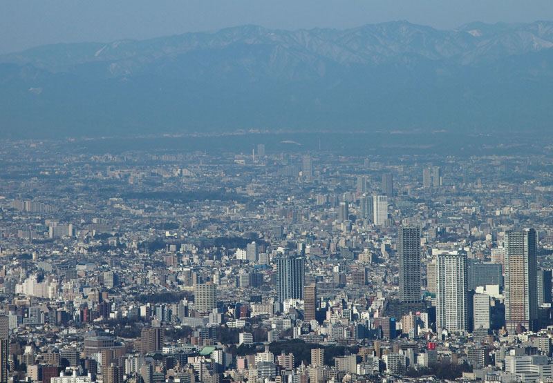 池袋サンシャインの奥には雲取山が見える。