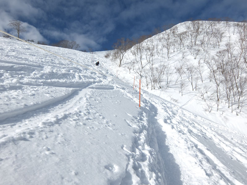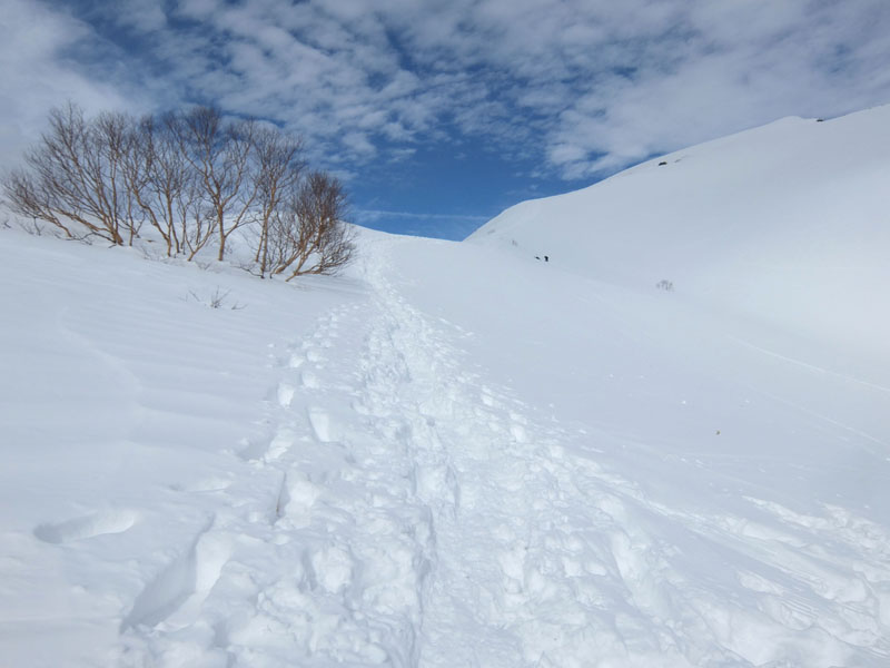 トレースの中でもできるだけ越後側を歩くのがよい。