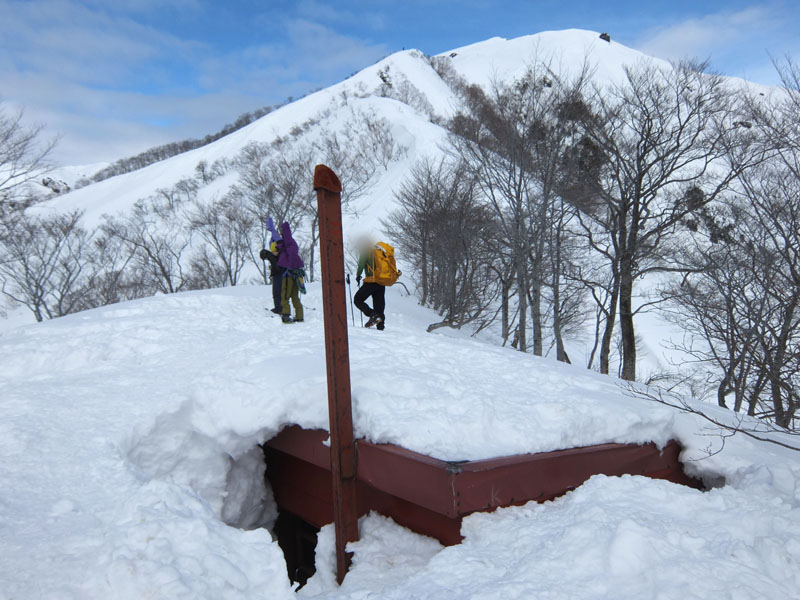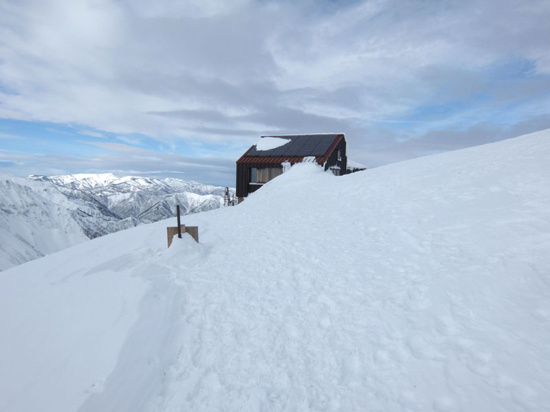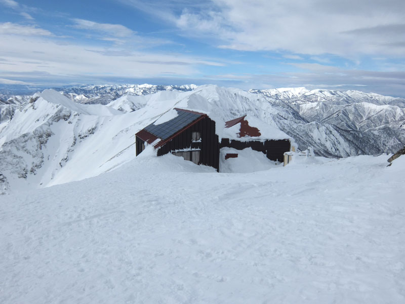 熊穴沢避難小屋は屋根まで埋まっているが、