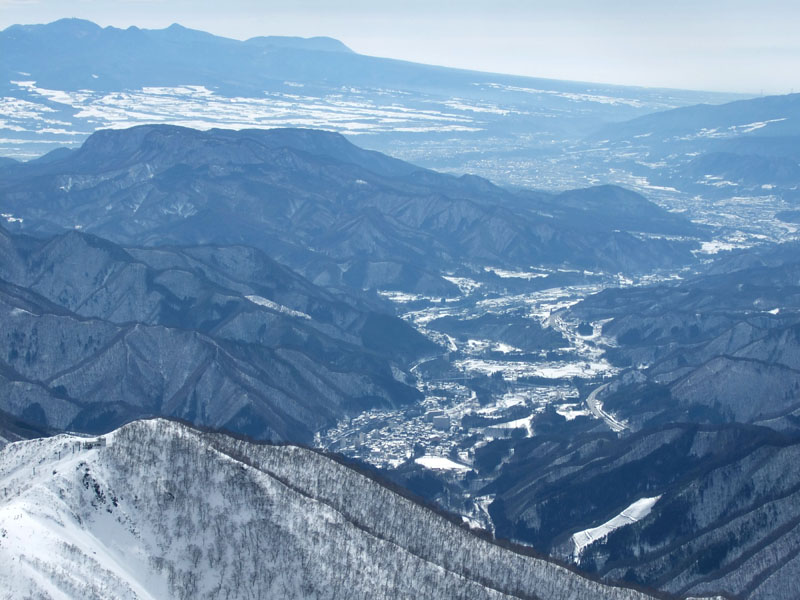 四阿山〜草津白根山〜苗場の稜線が見えている。
