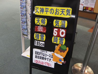 天神平では5℃、積雪185cmだったのか。普段よりは少ないな。