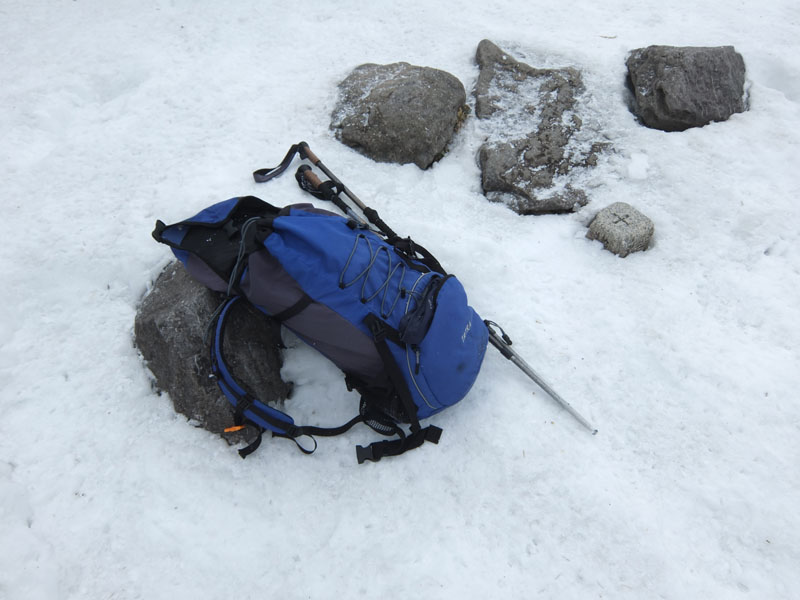 かなり硬くなっててアイゼン無しでは歯がたたない。