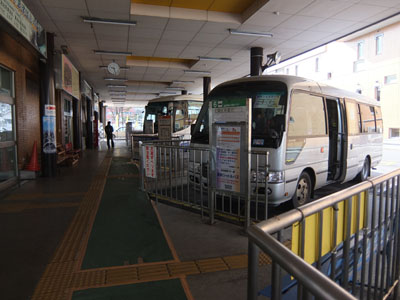 ロープウェイ駅行きの始発・無料シャトルバスに乗る。