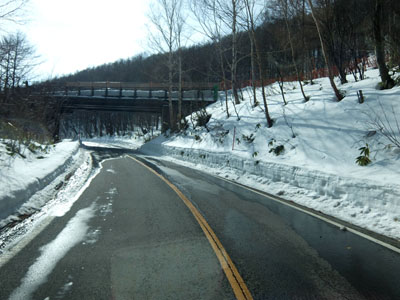 殺生河原までは、冬季閉鎖された国道を通行する。