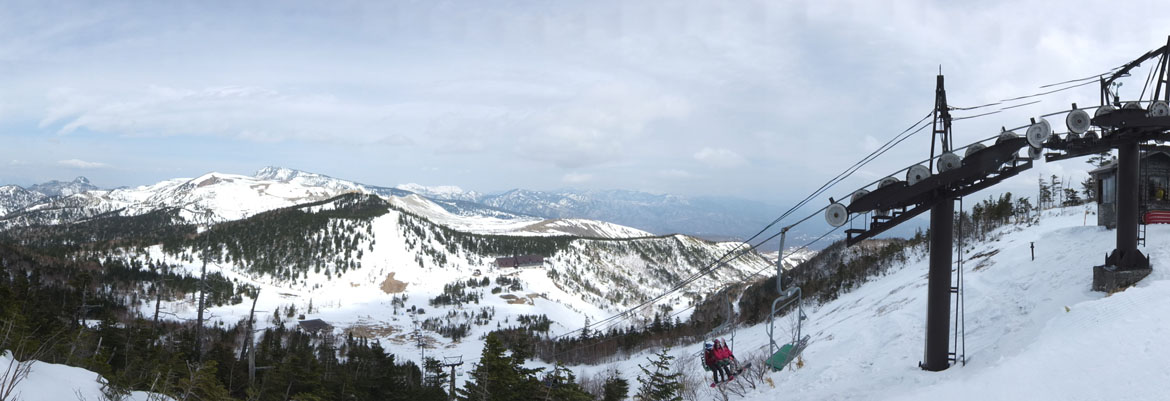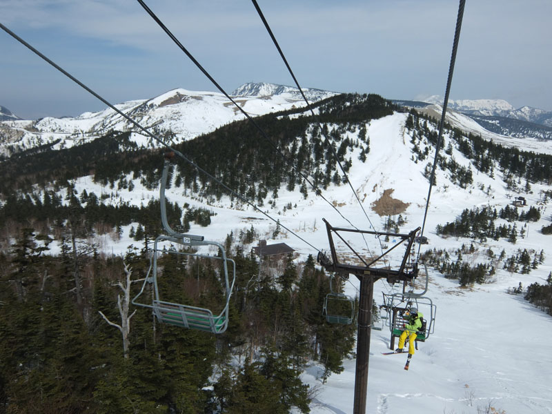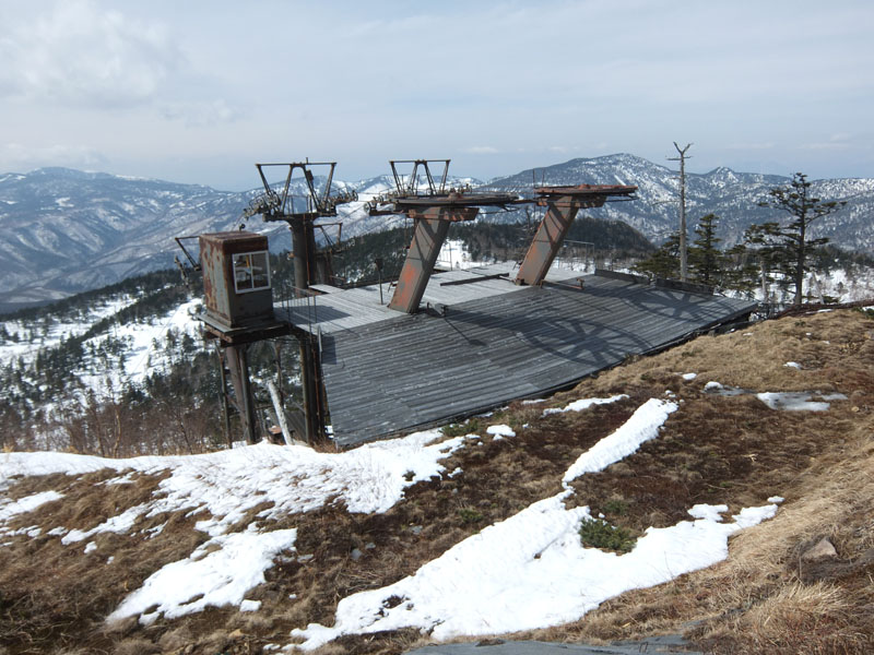 そこから南へ2,130m地点まで下ると、表万座スキー場の廃墟がある。