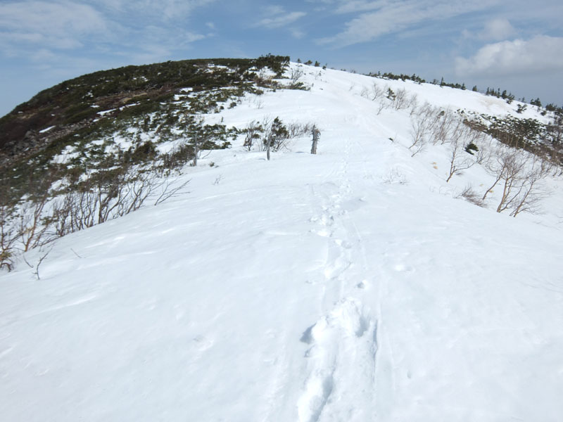 登山道がなく、ブッシュが積雪で覆われる冬季しか登れない。