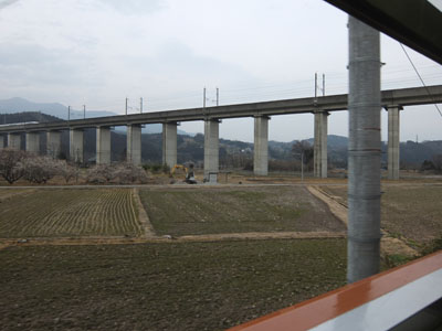 上越新幹線と交差するところではE4系新幹線電車が通過した。