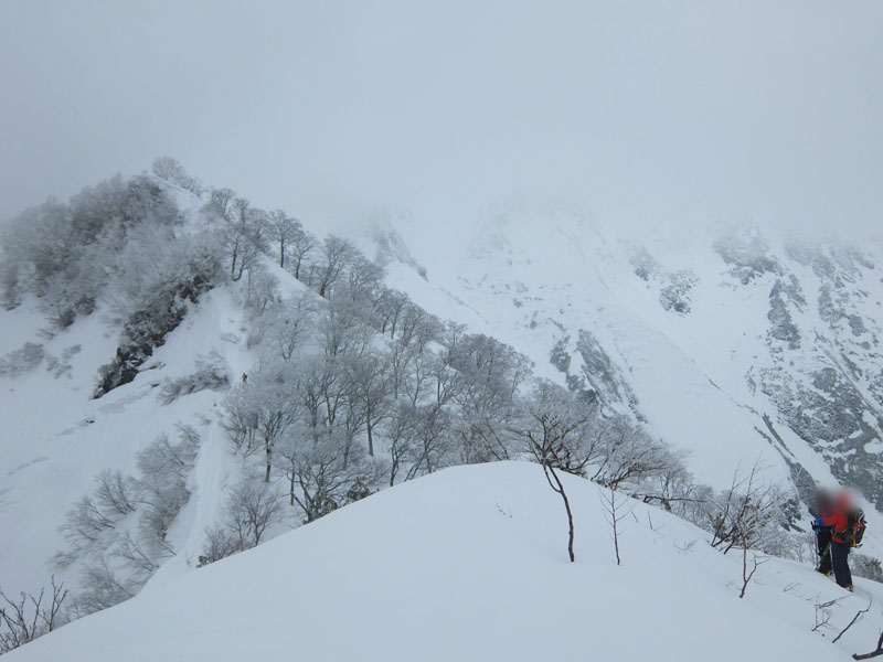 東尾根から登ってきているエキスパートパーティが居て凄い。