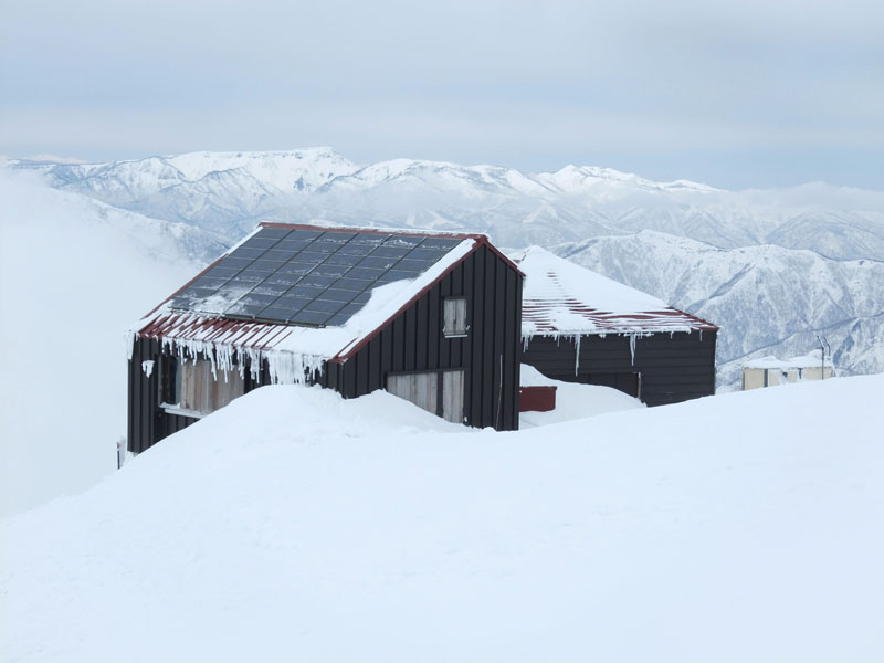 熊穴沢避難小屋は屋根の一部が出てきていて、前回より雪が減った。