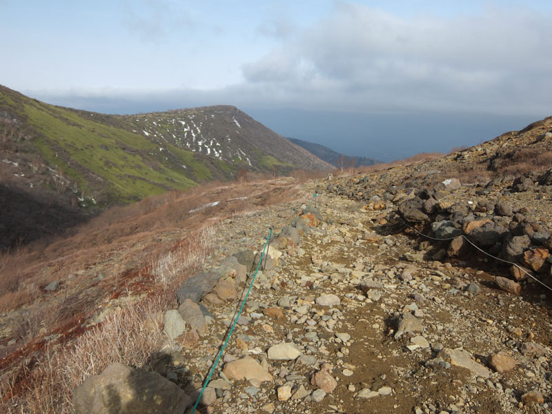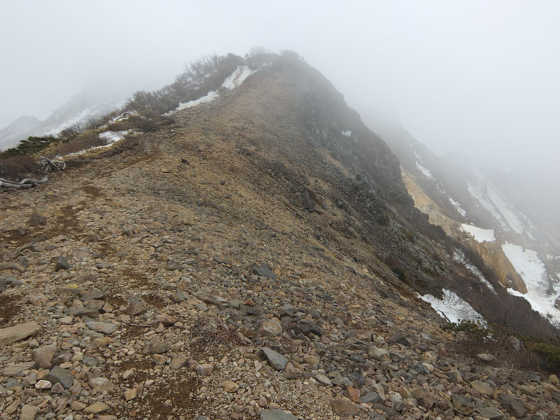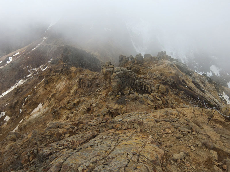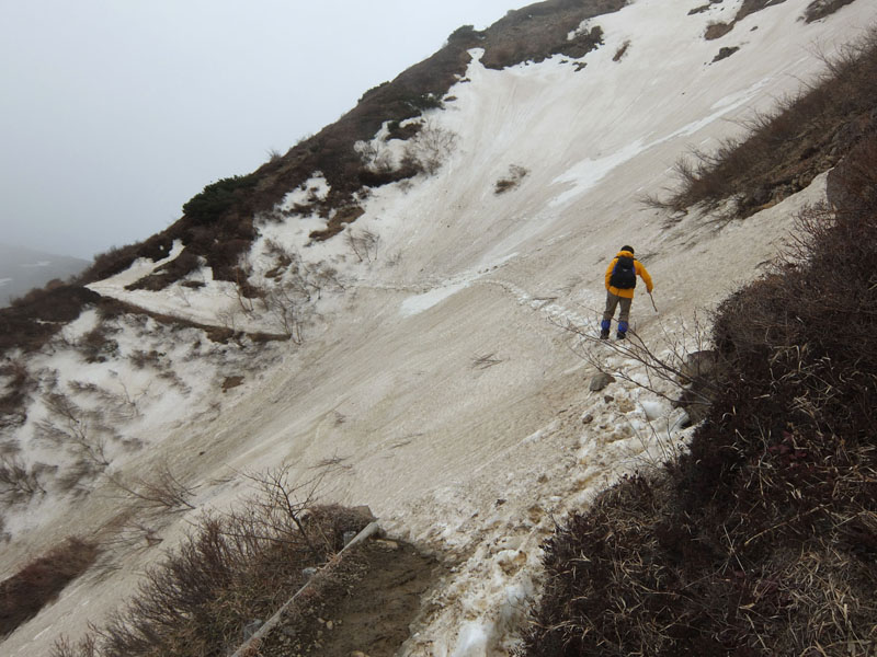 剣ヶ峰東面のトラバースはなかなか怖い。