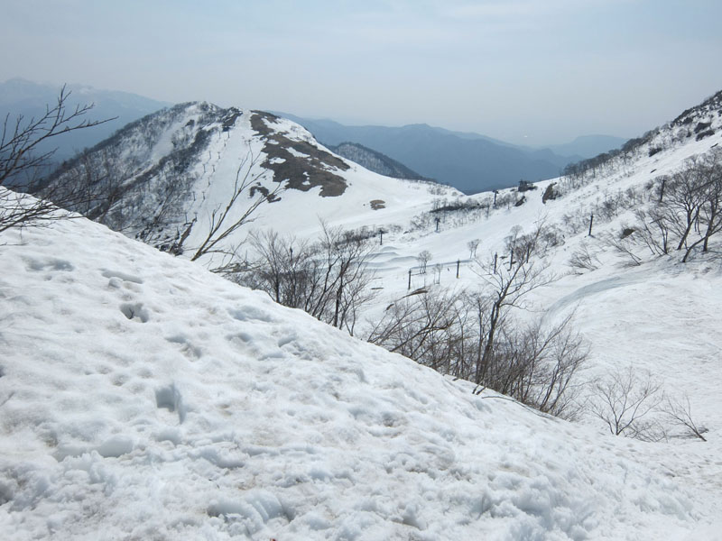 マチガ沢は下まで雪が繋がっていないため滑れないな。