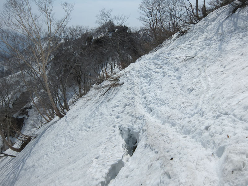 途中のトラバースでも大きなクラックが出てきていて要注意。