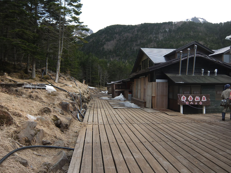茶色い鉄の川を過ぎればすぐに赤岳鉱泉だ。