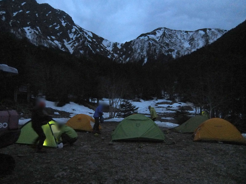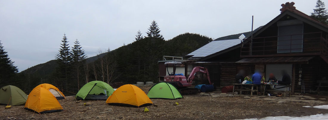 小屋前のベスポジには1人用テントが6張り設営されているが、