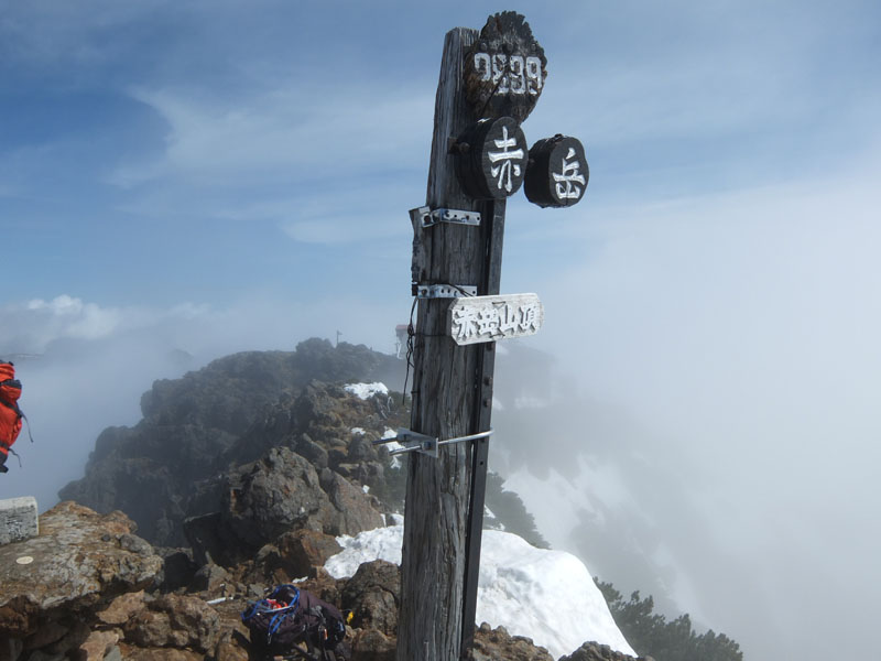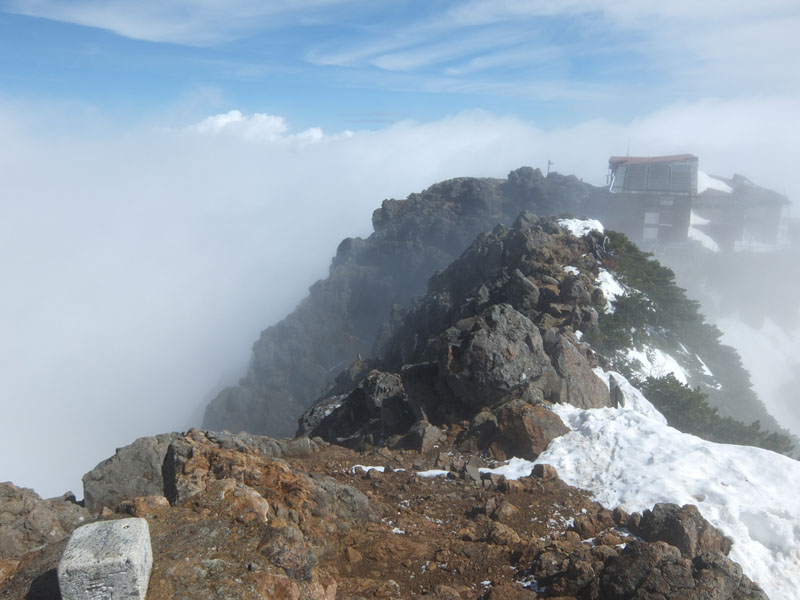 結局、行者小屋から頂上までアイゼンつけっぱなしだ。