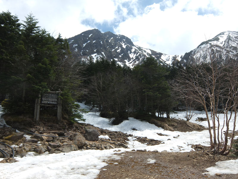 一気に標高1560mで、美濃戸口(1500m)よりも高い。登山口に雪はない。