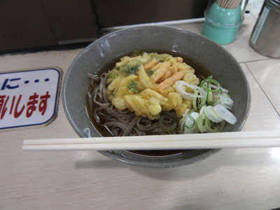 待ち時間があるため立ち食いそばを食べる。