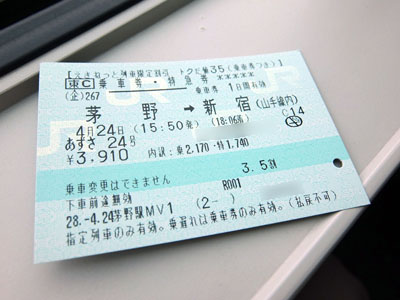 茅野駅からは特急あずさで新宿まで。