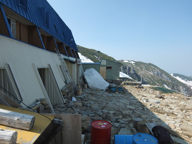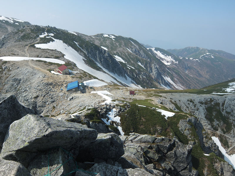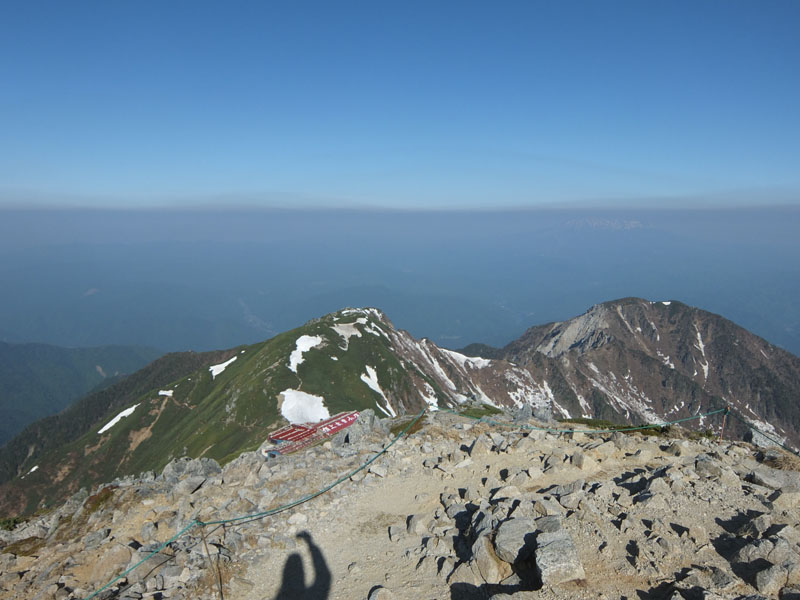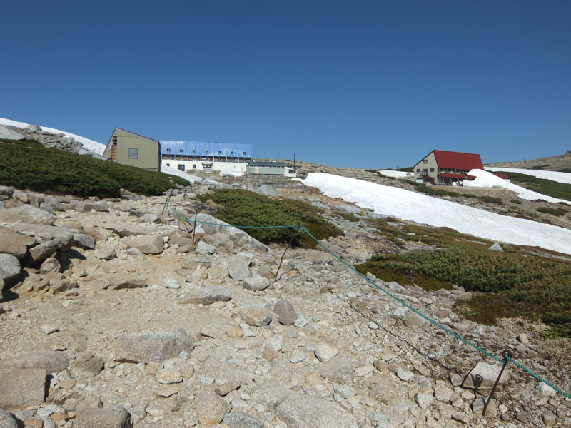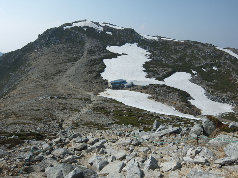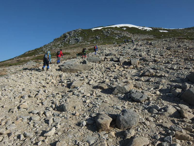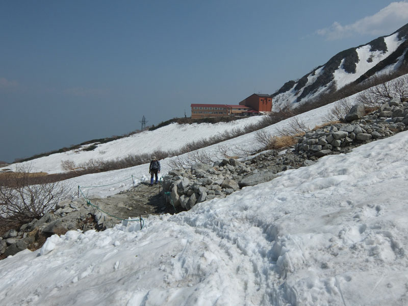 稜線に上がる手前では雪が溶けて夏道になっており、