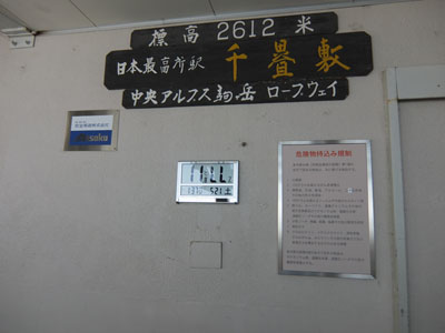 ロープウェイで千畳敷駅まで上がると一気に2612m。