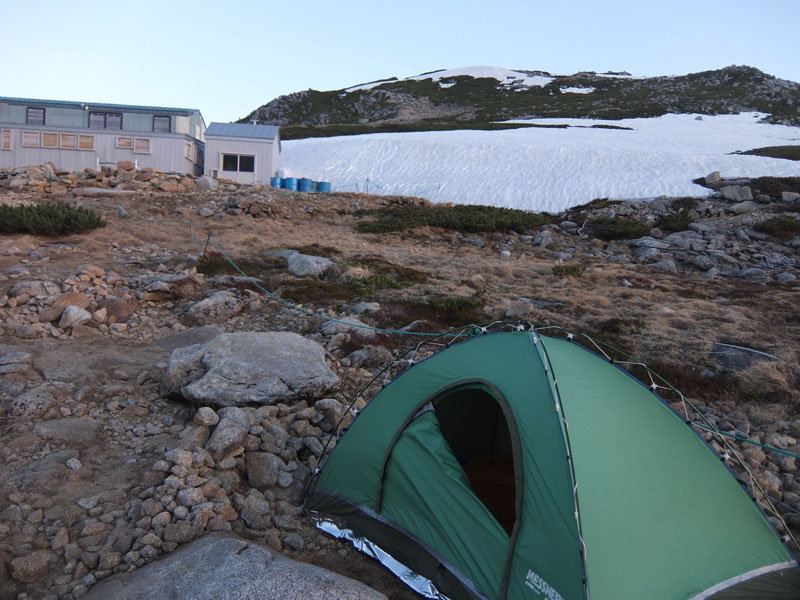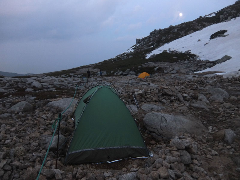 ヤマテンでは朝方の風は9m/sの予報のため、ガチガチに設営する。