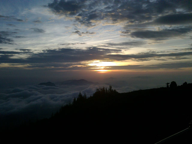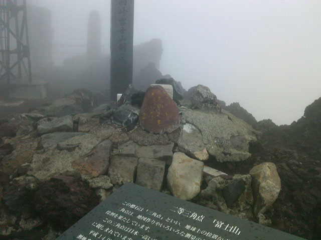 頂上で2時間ほど待機するが、なかなか雲が取れない。