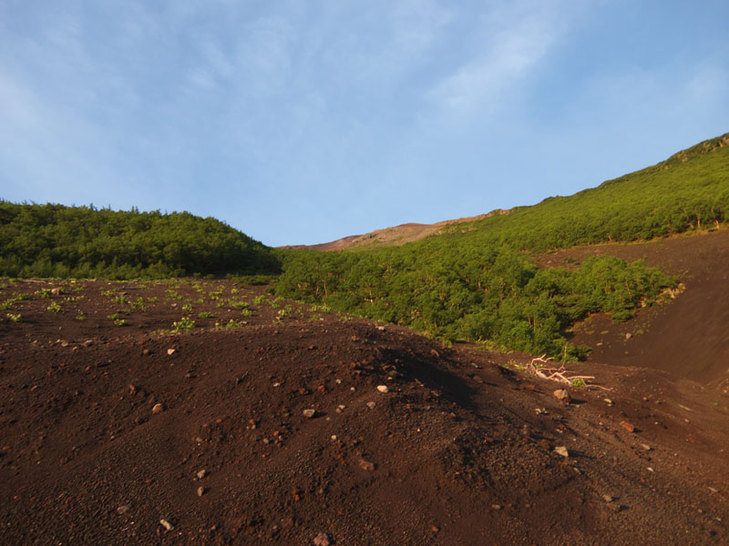 混雑のため5合目駐車場には入れられず、1.3kmキロポスト付近に駐車。