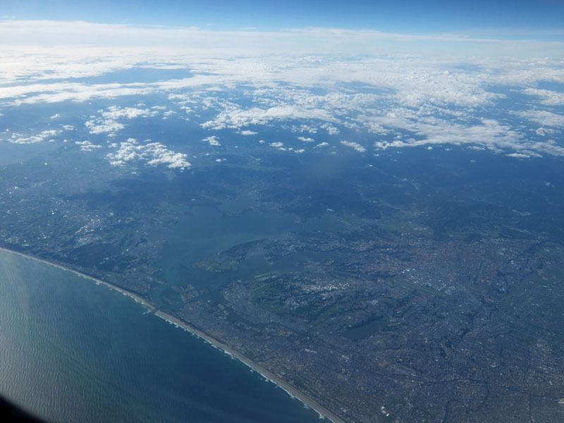浜名湖がわかりやすい。右下は浜松市街地。