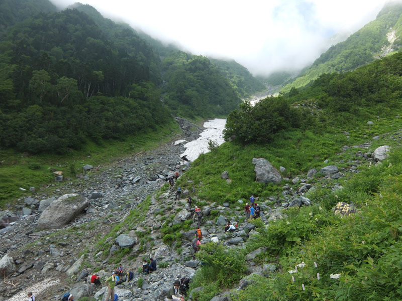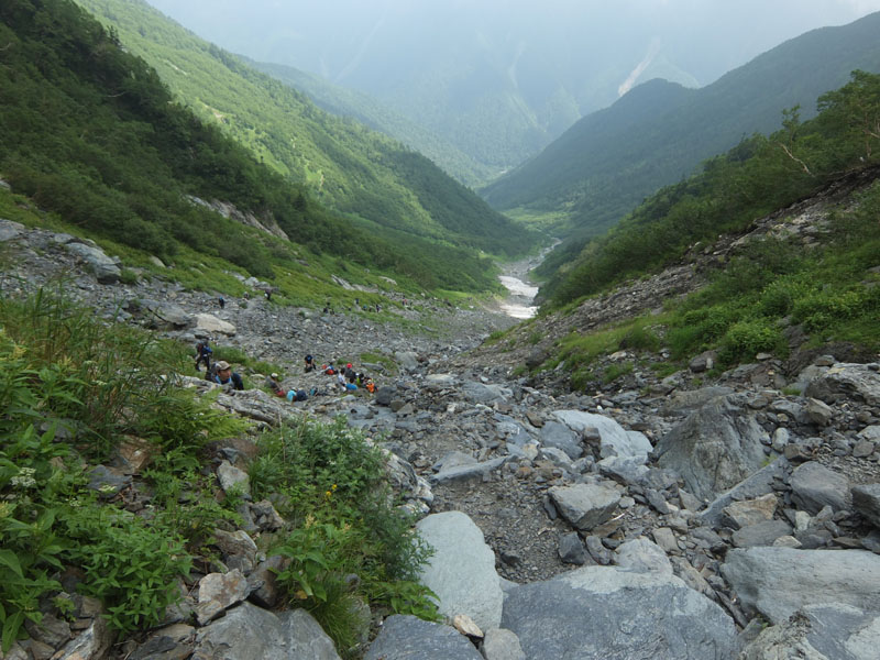 真下を覗くと、昨日登ってきた大樺沢が見える。