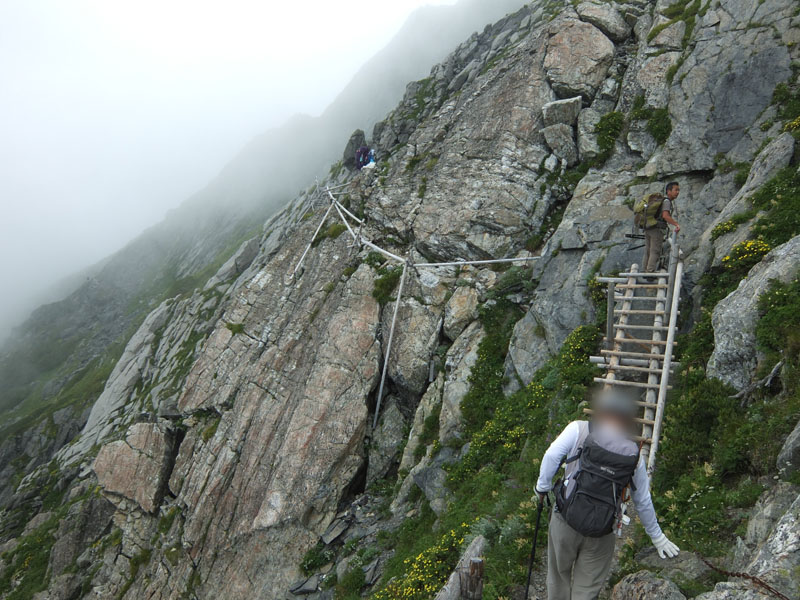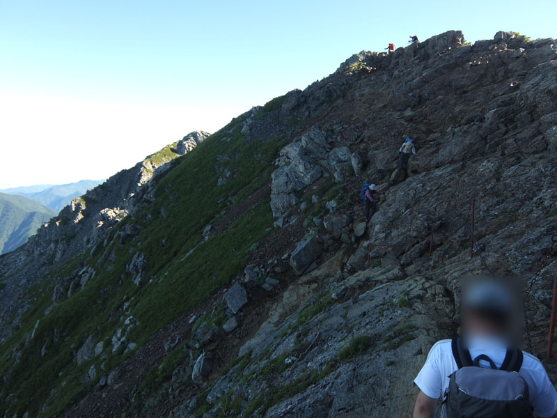 崖っぷちのトラバース道は落っこちないように注意。写真ほどは怖くない。