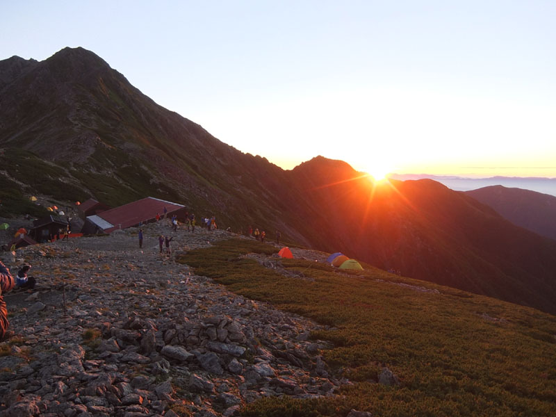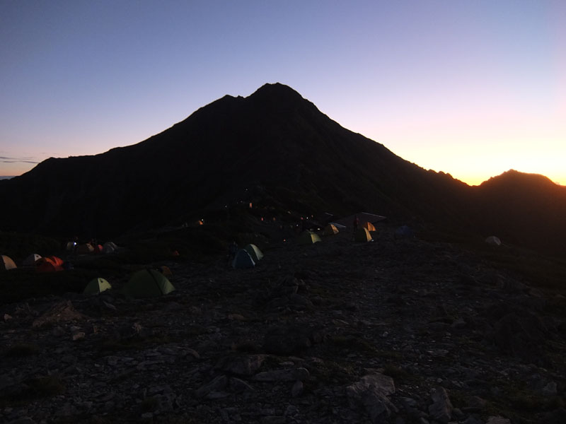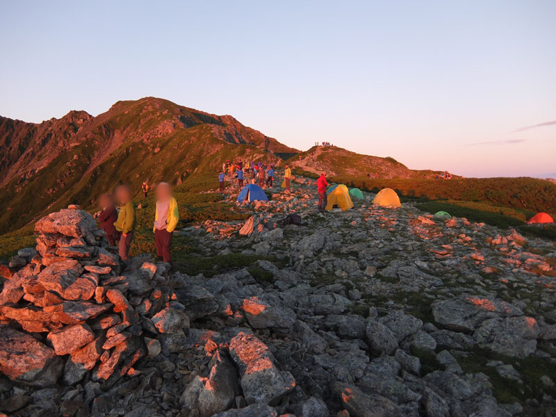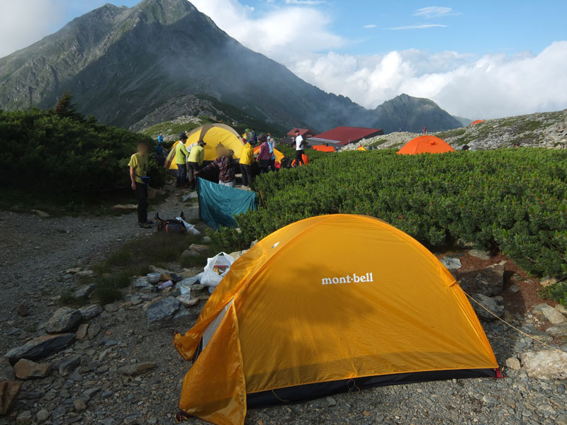 あまりの混雑に、小屋泊まりからツェルト泊まりにする人もいたようだ。