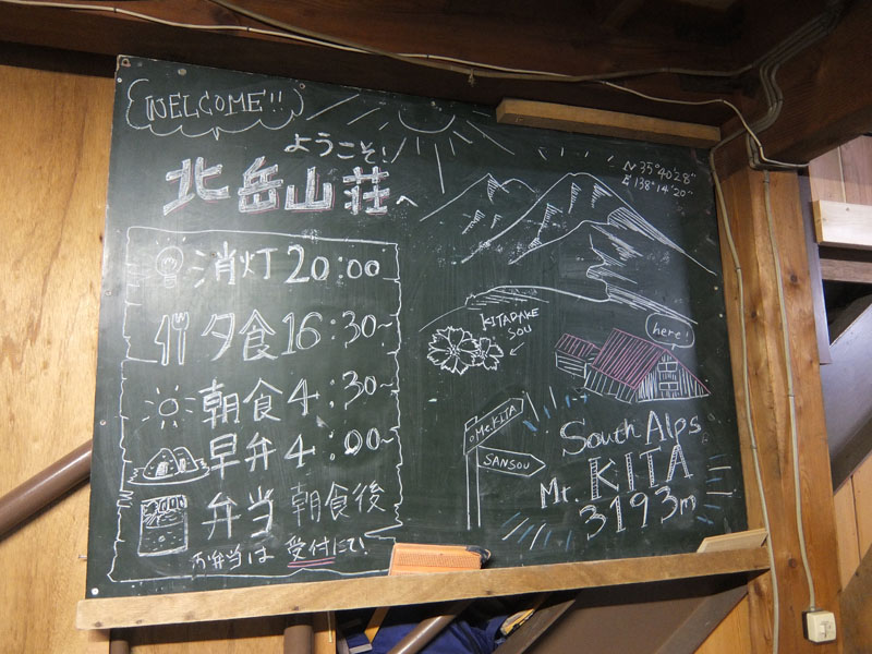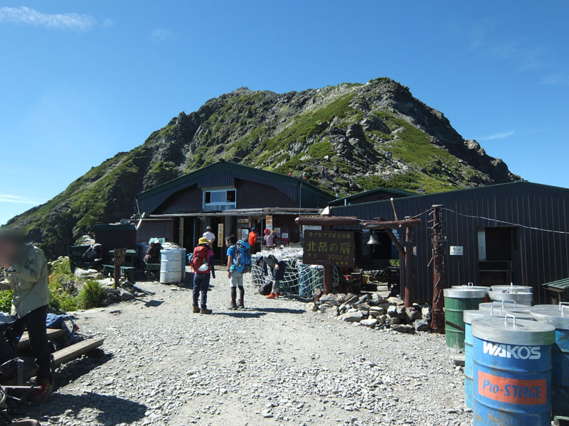 北岳山荘にチェックイン(僕はテント、友人は小屋泊まり)。